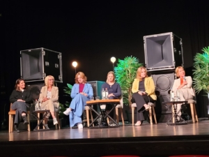 Rund 50 Gäste waren der Einladung zu einem Kinoabend mit Podiumsdiskussion gefolgt. Auf der Bühne des Cinémas Eupen begrüßte Moderatorin Heike Verheggen die Politikerinnen Isabelle Weykmans, Lydia Klinkenberg, Linda Zwartbol, Claudia Niessen, Nathalie Johnen-Pauquet, Diana Stiel, Caroline Völl und Margareta Ritter.