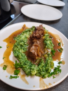 Im Februar waren das Ficelles de Piucardie, Carbonades flamandes mit Kartoffel-Spinat-Stampf und Milchreis mit Erdbeercoulis… Hjam …