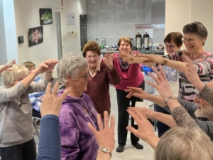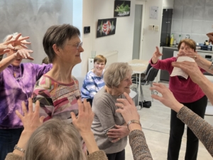 Die anwesenden Mitglieder haben sehr gut mitgemacht und sich auf das Experiment Lachyoga eingelassen.