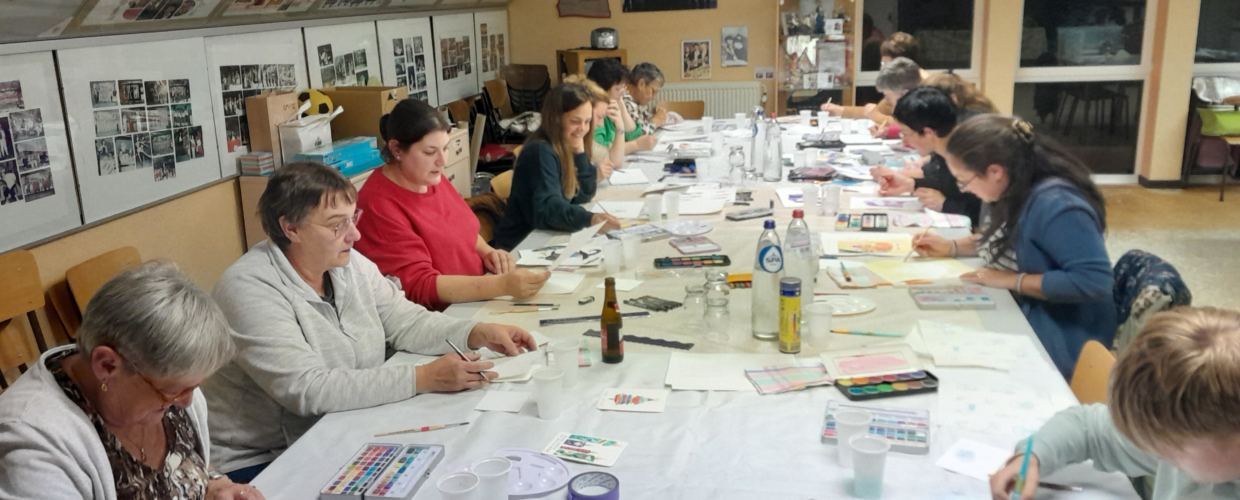 Bei tristem Wetter dem Alltag etwas mehr Farbe geben und unter professioneller Anleitung lernen, dass wirklich jede malen kann – das hat die Gruppe Heppenbach mit Tania erlebt …
