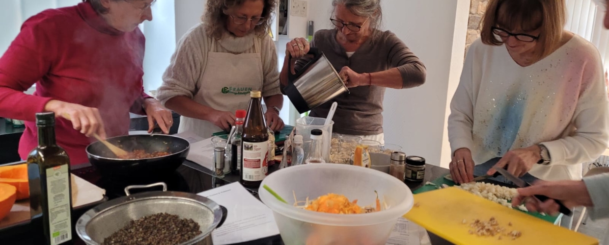 Neue Herangehensweisen, neue Rezeptideen, die allen schmecken und Tipps und Tricks gab es in diesem Kochkurs. Das Sättigungsgefühl nach dem Verzehr sollte auch besonders lange anhalten. Es gab rundum glückliche Gesichter. Danke Sabine!